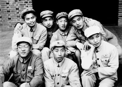 (1951年与战友合影,前排中为阎肃,图片来自网络)