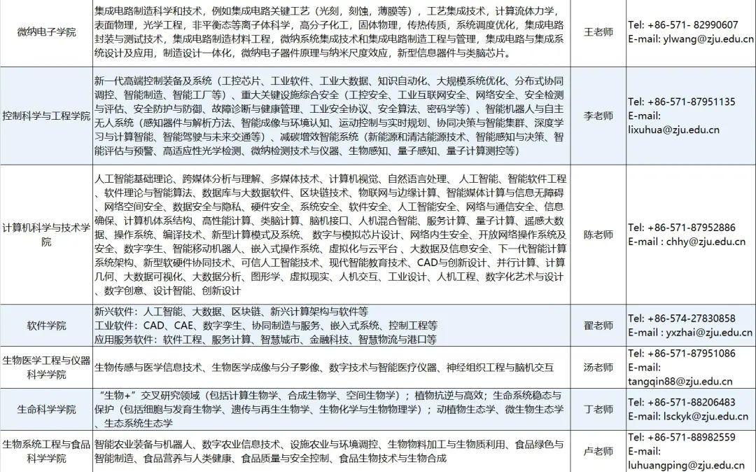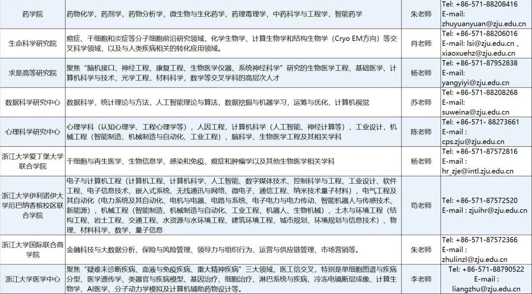 1.浙江大学各学院(单位)人事科(详见附表)