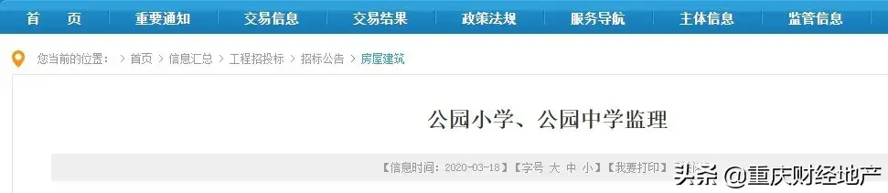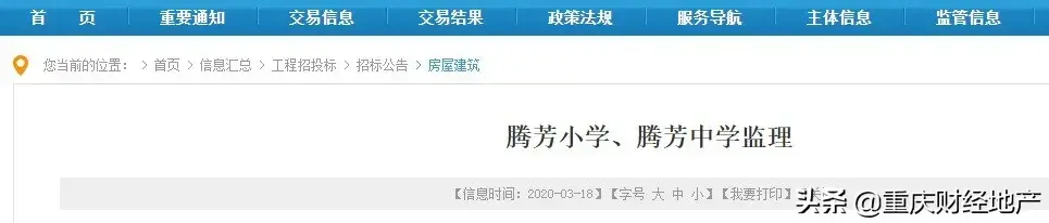 (此处已添加圈子卡片,请到今日头条客户端查看)3月18日,重庆公共资源交易网站上挂出了中央公园板块腾芳小学、腾芳中学,公园小学、公园中学四所学校监理进行公开招标公告。四所学校总投资金额超13亿元。
