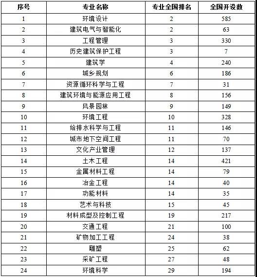 独具特色、实力强劲的专业设置:学校现有20个学院,63个本科专业面向全国第一批招生,有权招收保送生,实行本硕连读。建筑学、城乡规划和风景园林、历史建筑保护工程四个专业为五年学制,其它本科专业均为四年制。建筑学、城乡规划、土木工程、环境工程、建筑环境与能源应用工程、工程管理、材料科学与工程、给水排水工程、环境设计等9个专业为国家级特色专业,15个专业为省级特色专业。建筑学等21个本科专业获准陕西高校"一流专业"建设。建筑学、土木工程、工程管理、城乡规划、建筑环境与能源应用工程、给排水科学与工程、环境工程、材料科学与工程、冶金工程等9个本科专业相继通过教育部专业评估或工程教育专业认证。