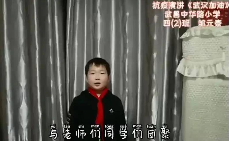 武昌中华路小学邹元泰、黄子涵进行抗“疫”演讲。