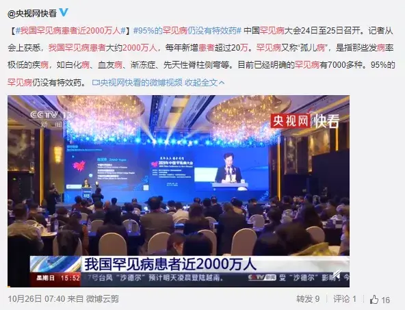 目前,全球估计有超过3亿名罕见病患者,而由于人口基数庞大,我国就有近2000万人,罕见病在我国并不罕见。