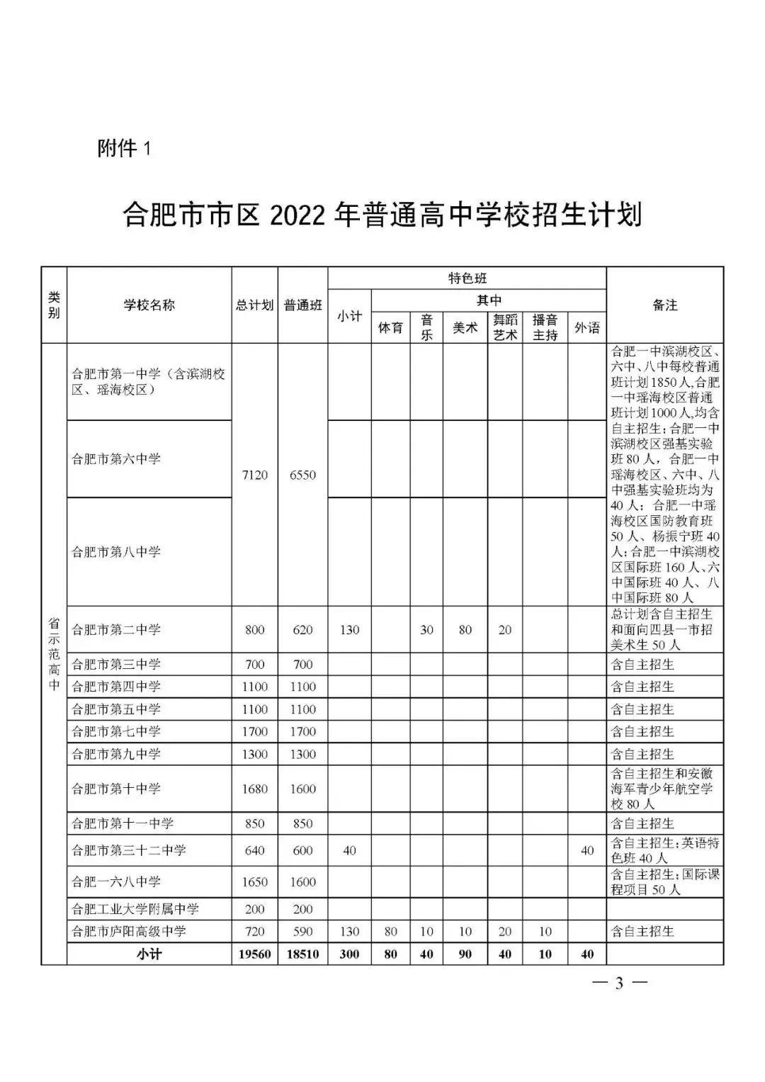 今年市区普通高中招生学校39所,较去年增加1所,即合肥包河区协和双语学校。市区招生计划29400人,比2021年增加4005人。
