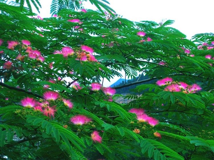 一跨进我们学校大门,最吸引你眼球的就是操场上那棵高大挺拔的合欢树。