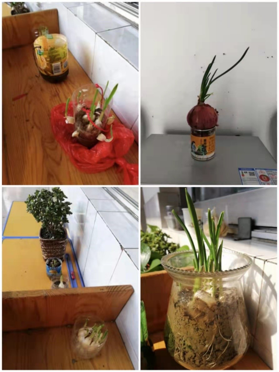 第二课时根据初栽培情况分组讨论分析“怎样做更有利于大蒜生长”,志愿者引导孩子们识别出错误的栽种与培植方式,并鼓励孩子们根据自己所学及生活经验说出大蒜的正确栽培方法与注意点。运用观察、比较、分析、推理等科学方法,让孩子们真实体验植物生长对水和阳光的需求,体会生命的意义,培养热爱自然、关爱生命的情感。