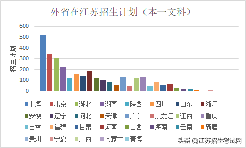 从表格中我们可知:外省在江苏本一招生计划最多的是上海,其次是北京。
