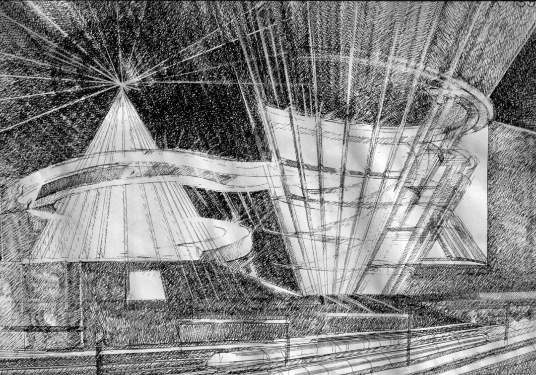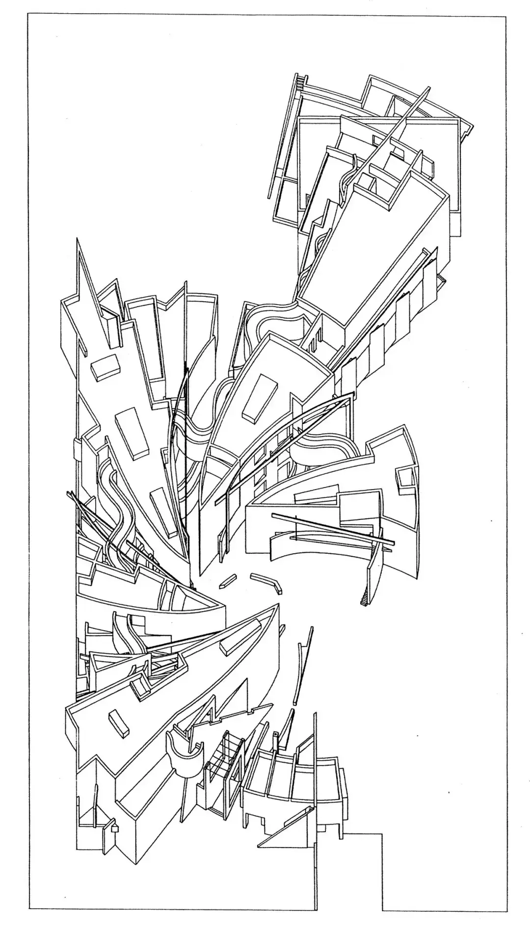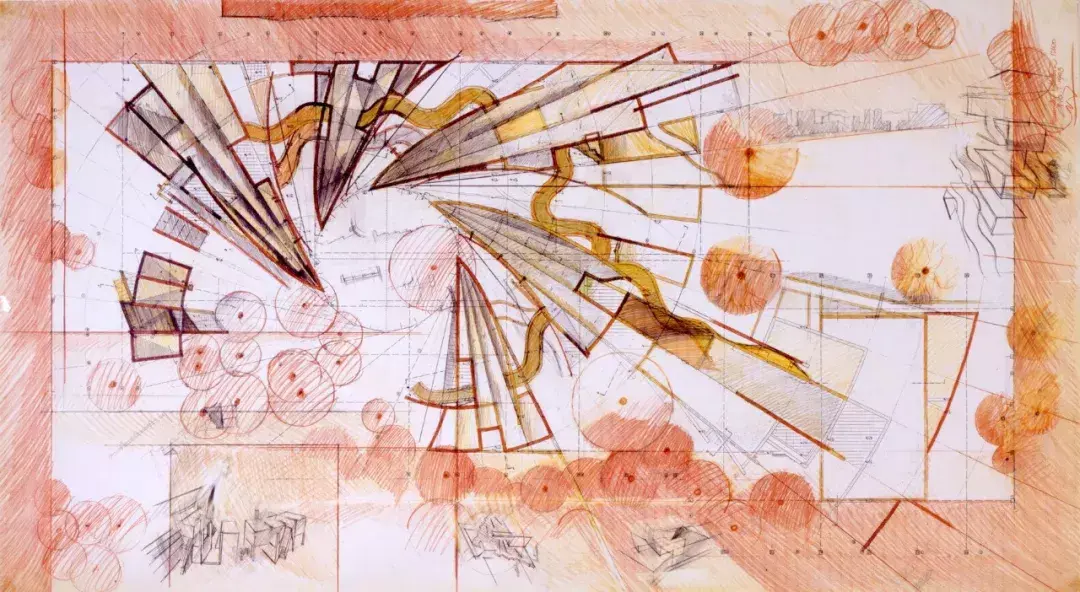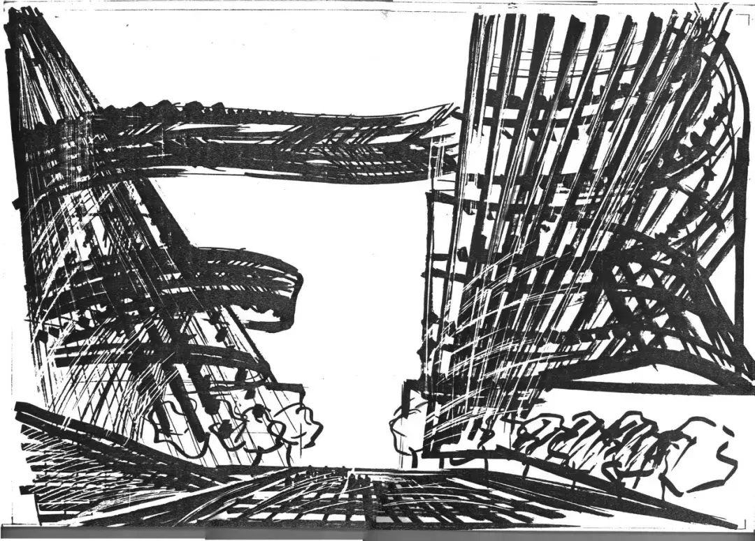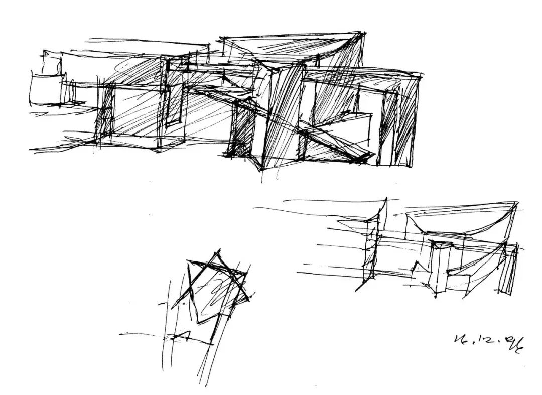 他的作品强调几何和不对称性,他将建筑草图作为一种载体,把所有理性或非常规的想法倾注其中。