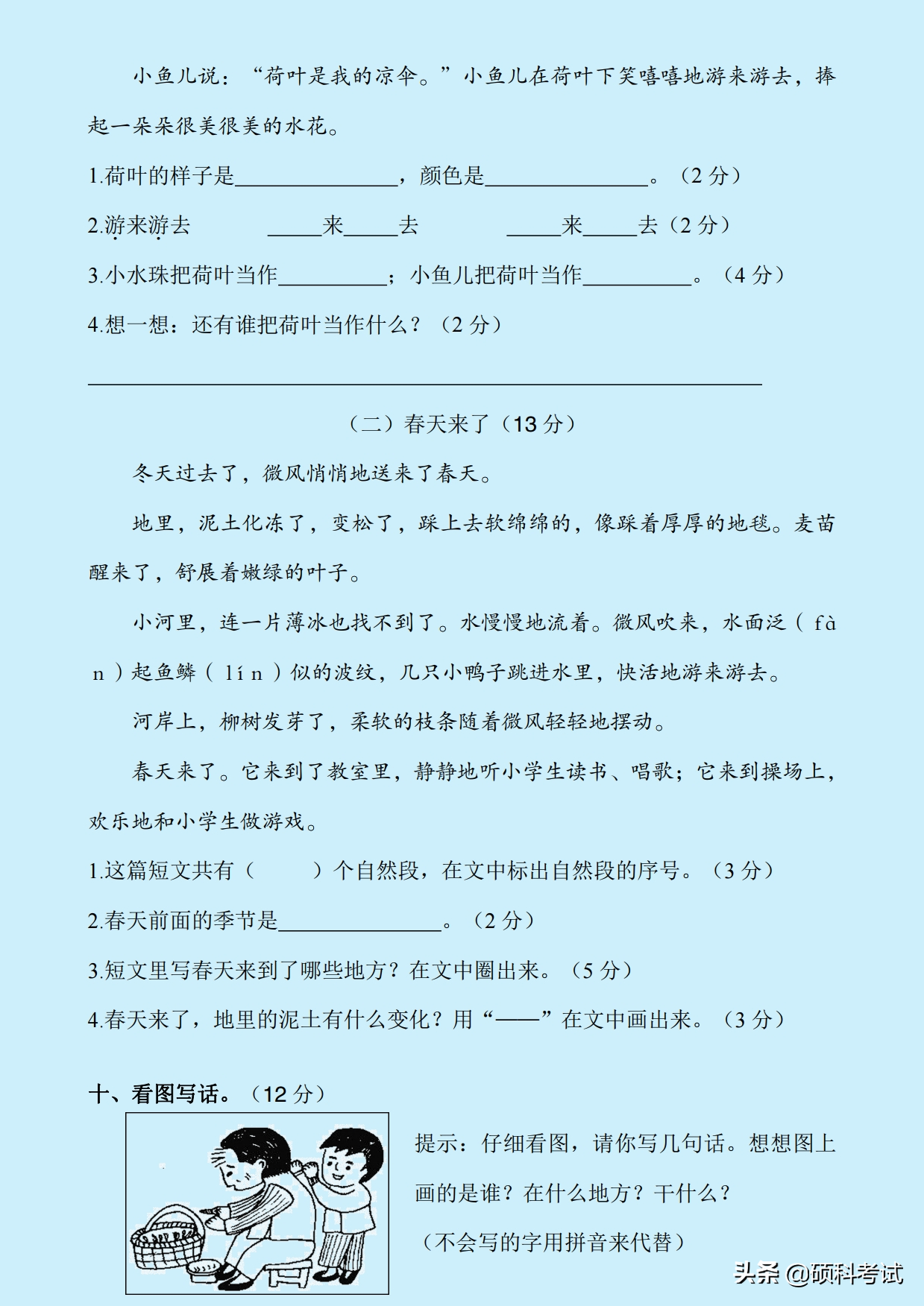 一年级语文(下册)期末检测卷三套附答案,难度适中。主要包括:看拼音写词、组词、填空、判断、阅读、看图写话等,考查知识点全面。适合一年级孩子巩固知识、查缺补漏,考前复习。夯实基础争取期末拿满分,建议家长收藏、打印练习!