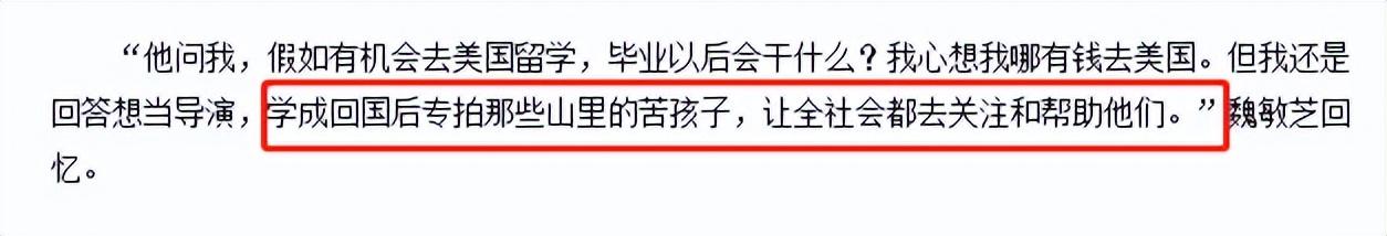 当年魏敏芝第一次与陈尔岗教授交谈时,就说起自己的梦想便是有机会专门拍一部关于山里苦孩子的故事,希望全社会都去关注和帮助他们。