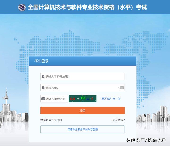 中国计算机职业技术资格网(http://www.ruankao.org.cn/)进入网站, 点击报名入口