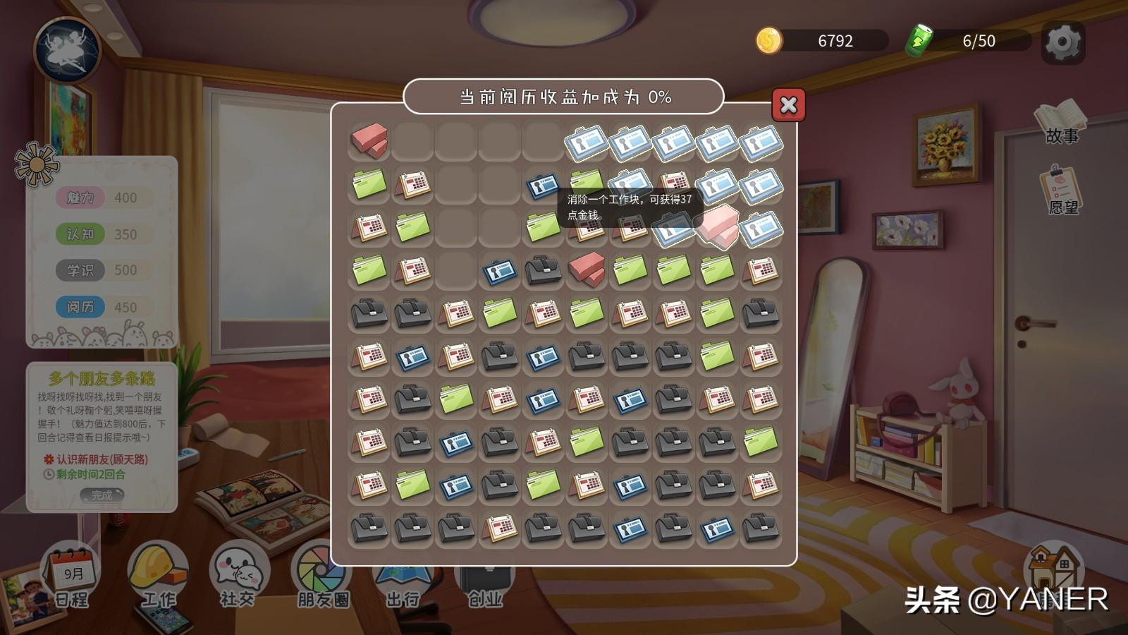 而工作玩法则像消除类游戏,点击2个或者2个以上相同图形进行消除就可以了,这类玩法真的是玩过太多了,社交和朋友聊天增加好感,朋友圈查看好友动态点赞或者转发会有几率获取特殊BUFF,比如转发锦鲤,加财运什么的,这部分主要吐糟的是朋友圈的赞不能取消,并且除了遇到特殊节日或者事件,自己无法在朋友圈发内容。