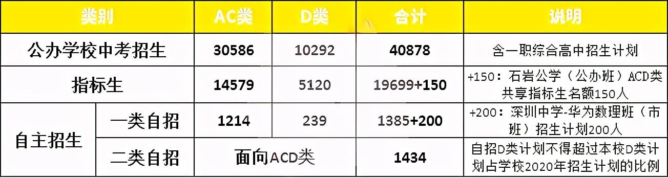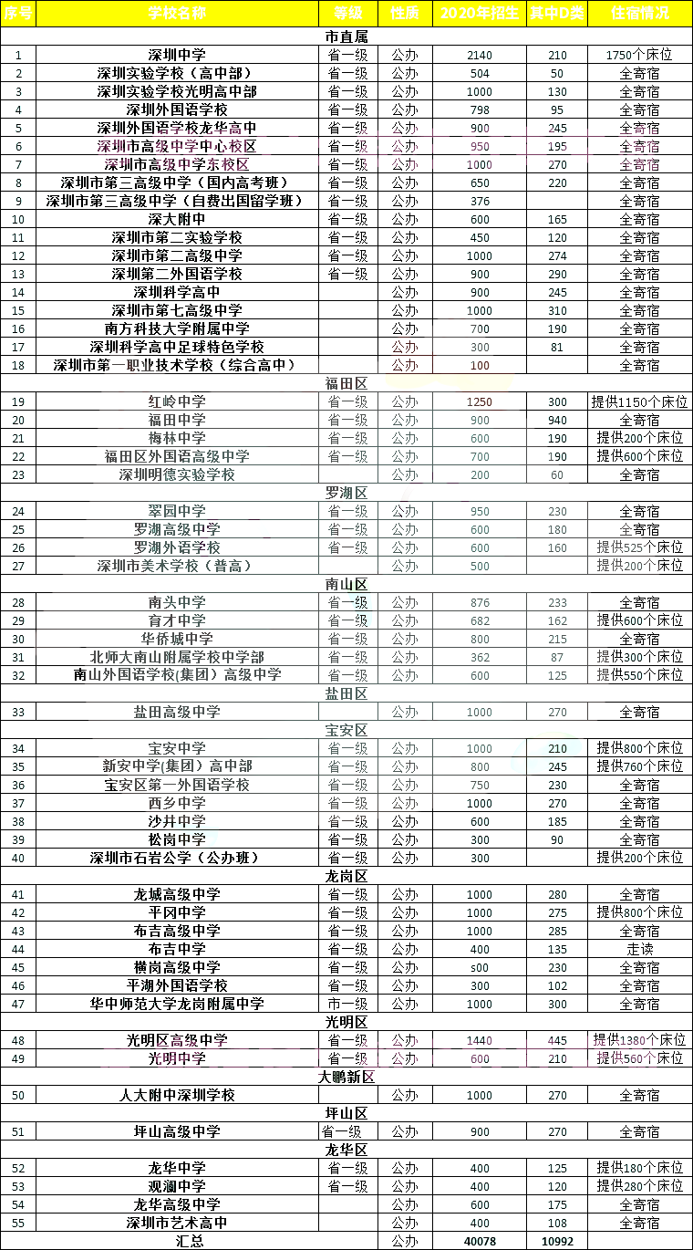 2020年深圳公办普高,2020年中考计划招生共40078个(不含一职综合高中招生计划),其中D类10992个;