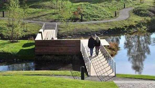 小游园如果靠近大型建筑物而面积小,地形变化不大,可规划为规则式;如果面积较大,地形起伏多变,而且有自然树林、水塘或邻近河、湖水边,可规划为自然式。