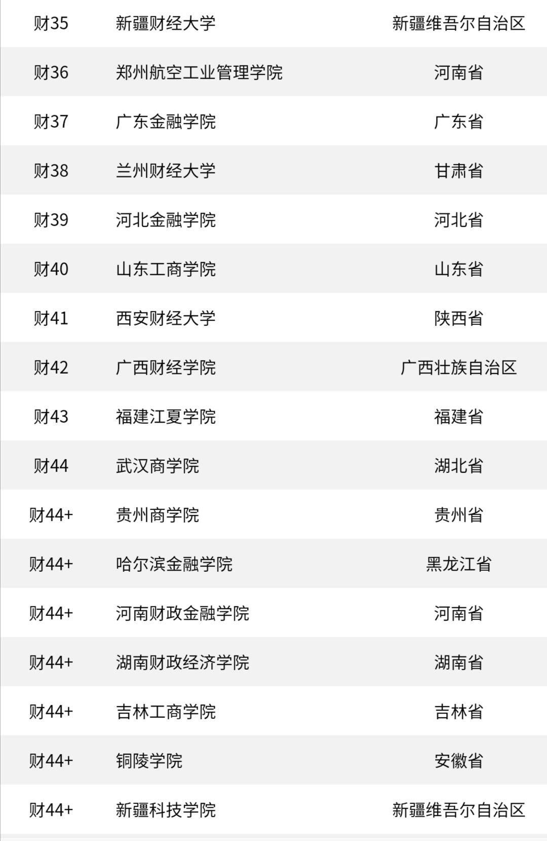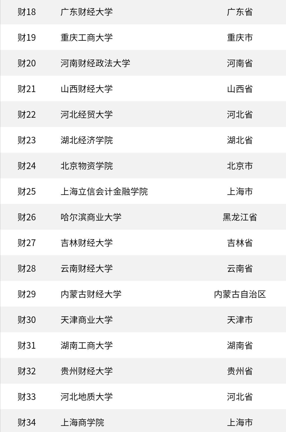 在这次排名中,第5名是西南财经大学,第6第7名分别是东北财经大学和江西财经大学,以上7所高校和排名第15的山东财经大学都是原财政部直属高校;另外,浙江工商大学、天津财经大学、山西财经大学、安徽财经大学、吉林财经大学、哈尔滨工商业大学等也都是性价比很高的学校,适合各分数段考生选择。