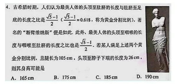 算了半张草稿纸得出来个180cm,在选项B与选项C之间纠结。(我以为图片是个男的。)