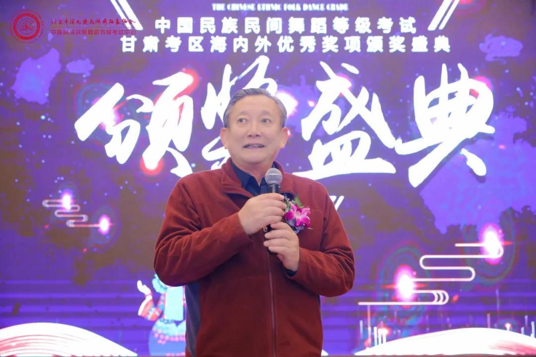 颁奖仪式结束,海文主任登台致祝酒词,请大家将美好的祝福装进酒杯,共同祝愿中国民族民间舞蹈等级考试甘肃考区的明天更加辉煌!