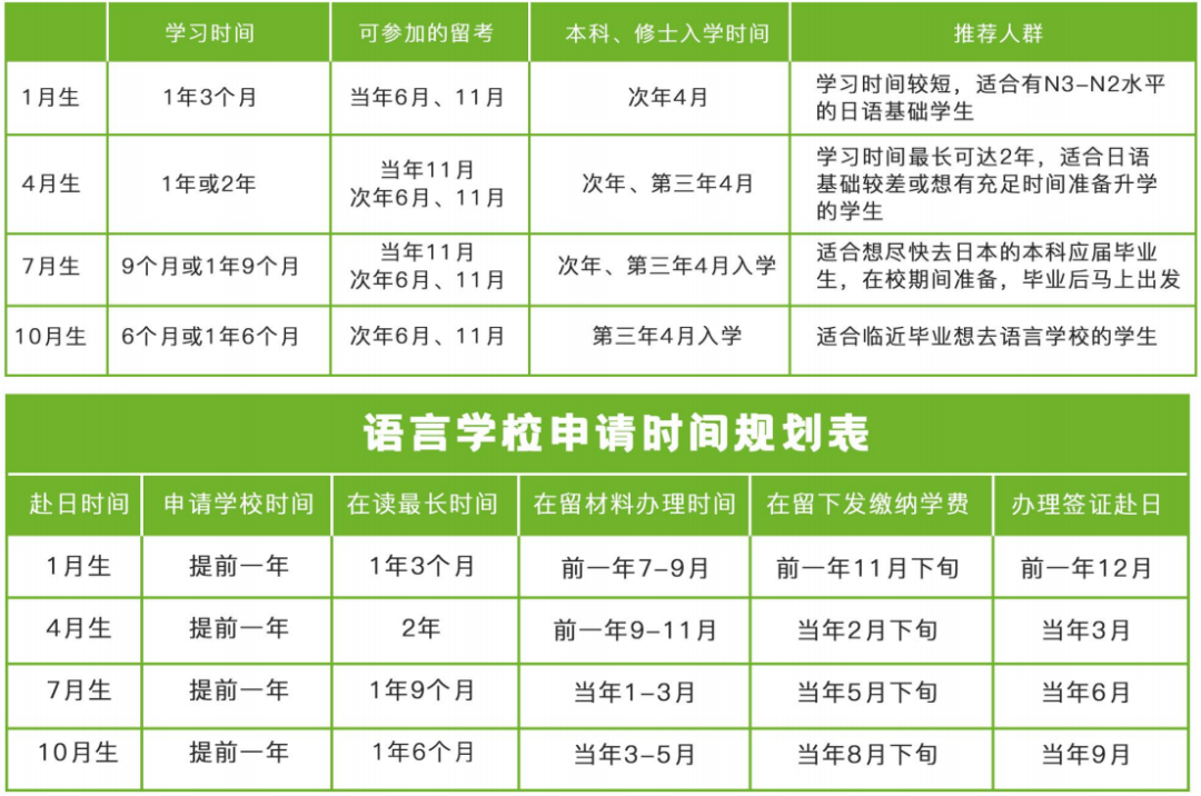 7-8月:可以开始选选语言学校,如果想报热门学校或者已经确定好学校,可以先申请拿合格占名额9-10月:开始做语言学校的材料11月:材料递交入管局12月:准备入管局电话调查23年1月:继续学日语,等待在留下发,应对电话调查2月:在留下发,给语言学校汇款学费、选宿舍3月:办签证,买机票,准备赴日4月:入学日本读语言学校