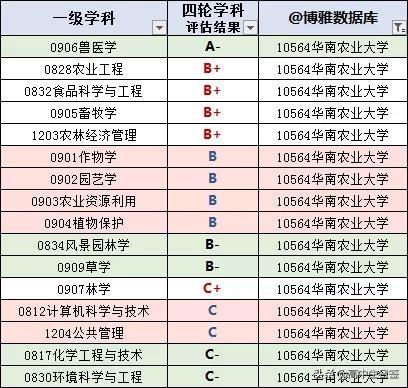 下面图片是华南农业大学第四轮学科评估的结果,数据来源于:博雅数据库。