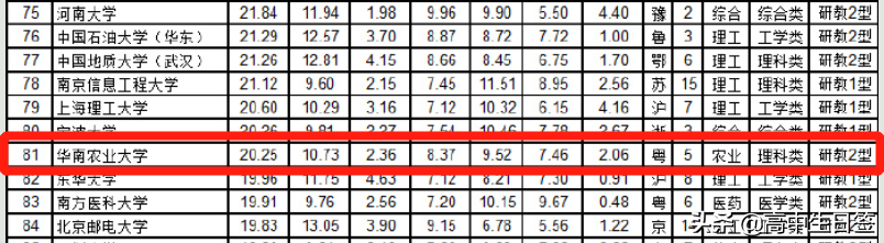 2020年武书连中国大学综合实力排行榜中,华南农业大学排在第81位。