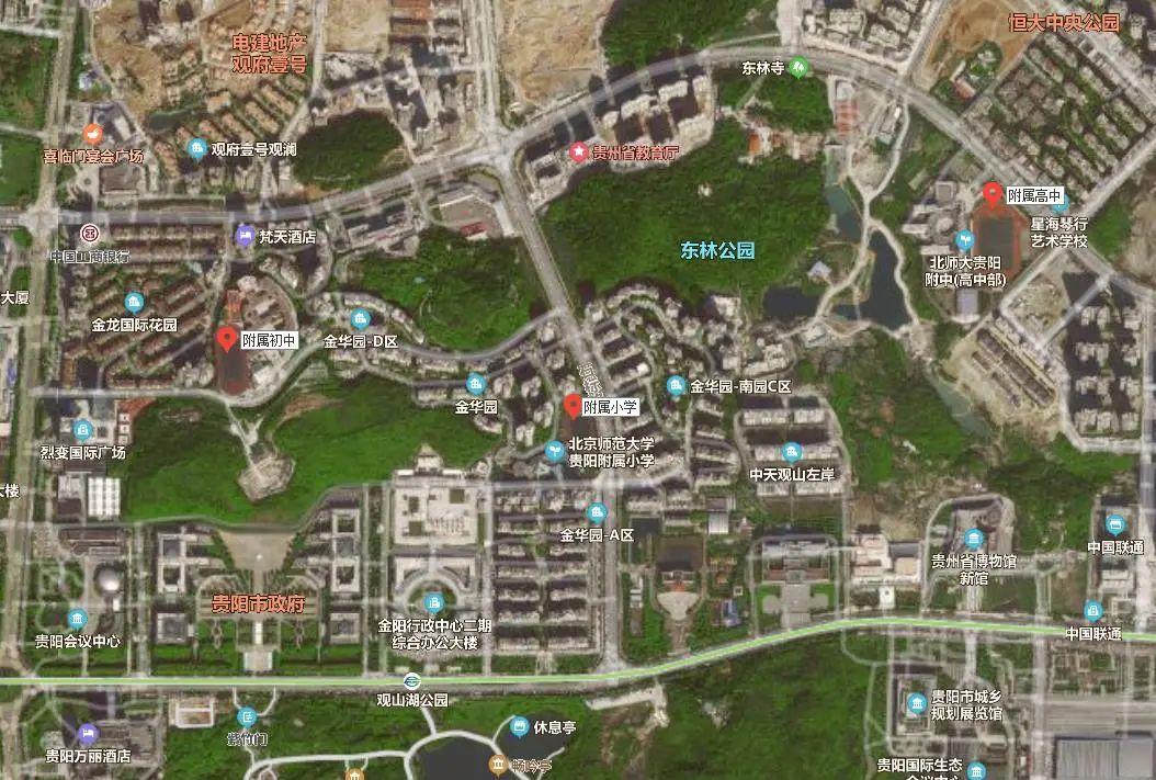 贵阳知名小区金华园,紧邻市行政中心,北师大贵阳附校就在周边。学校内部有附属小学,西侧开办有初中,东面则是高中部。