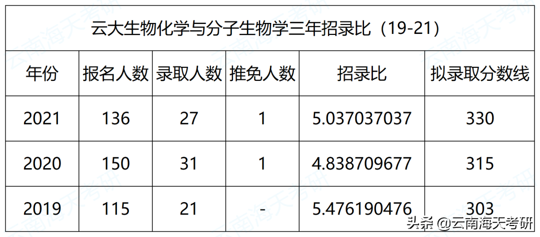 云大暂未发布22考研报录比,因此此阶段主要以19-21年作为参考,后期云大发布相关资料后,小新老师也会单独发布相关分析推文,对此专业感兴趣的同学记得收藏哦~