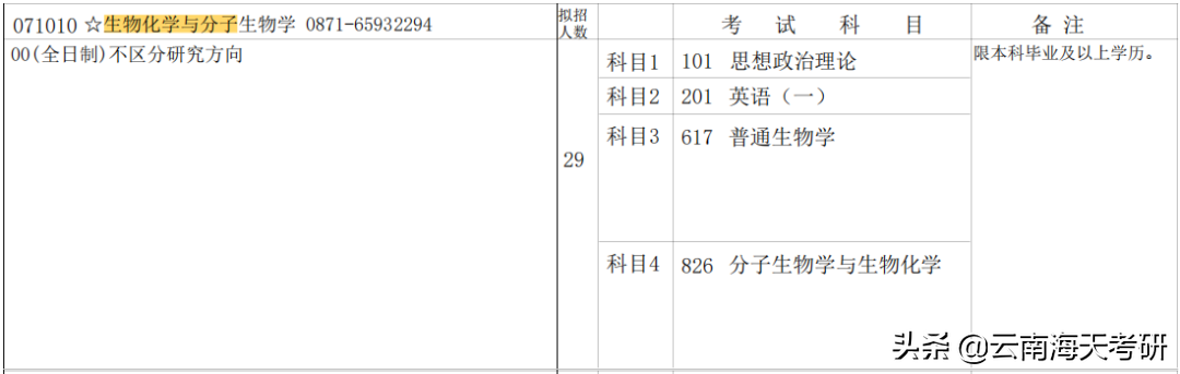 科目2 英语(一)科目3 普通生物学617科目4 分子生物学与生物化学 826