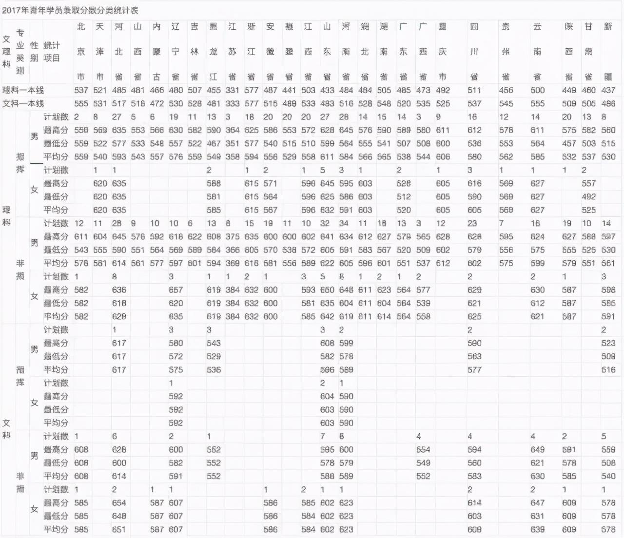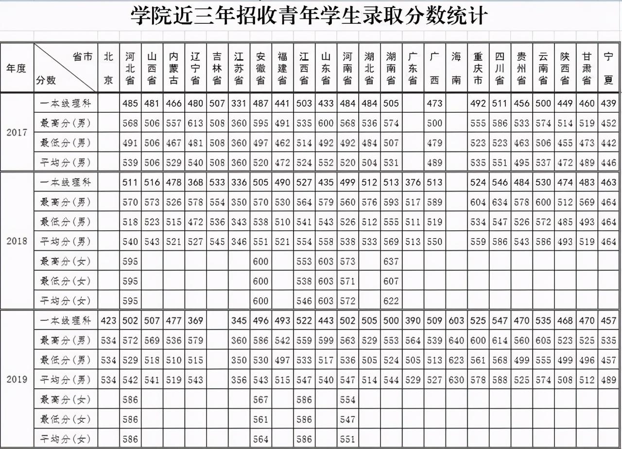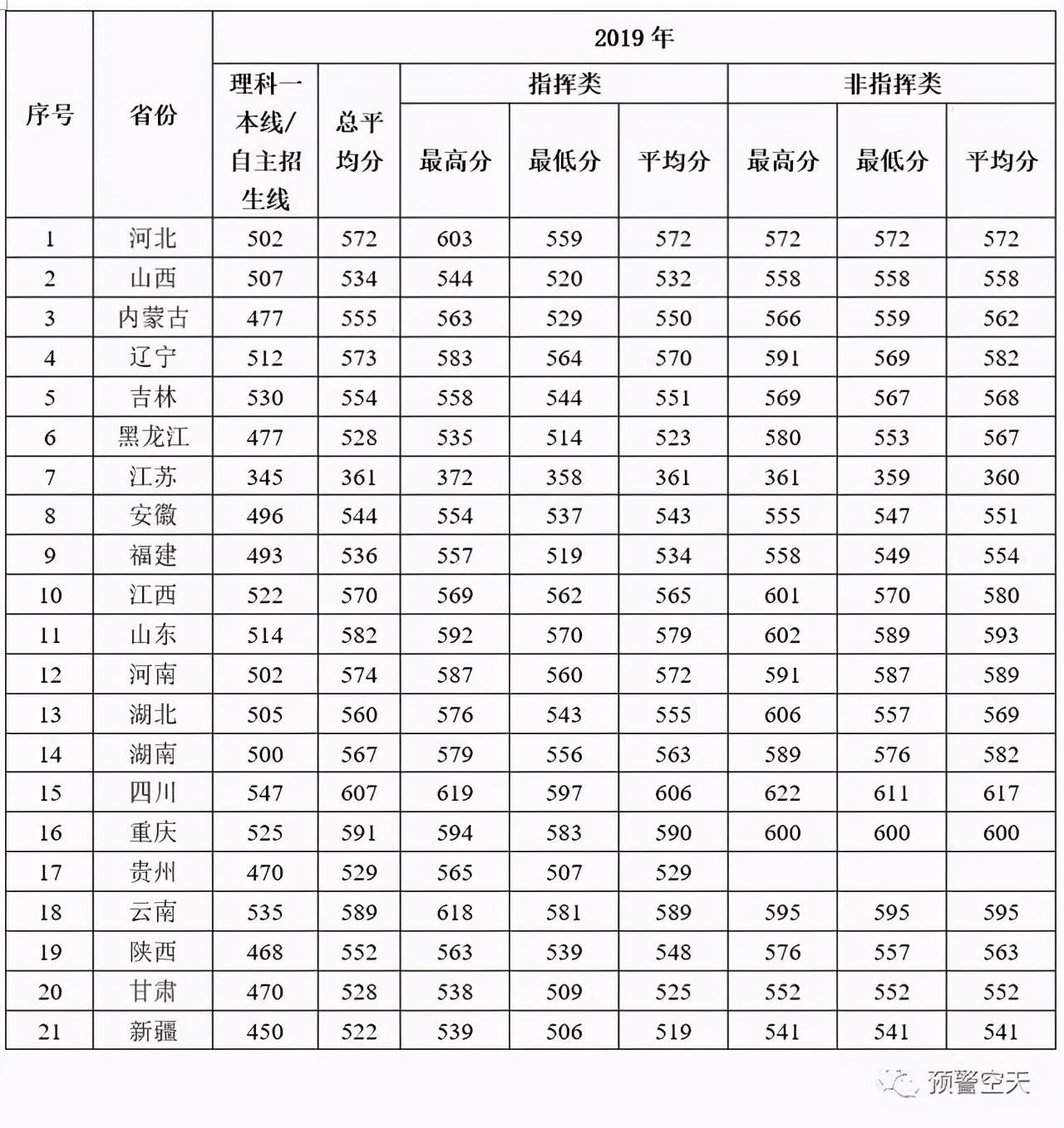 19、空军预警学院2018-2019年在各地录取分数线: