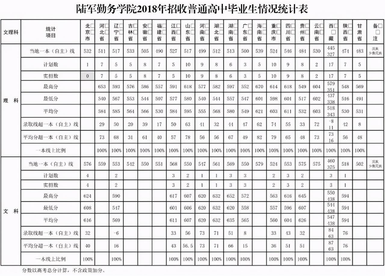 11、陆军勤务学院2018-2019年在各地录取分数线