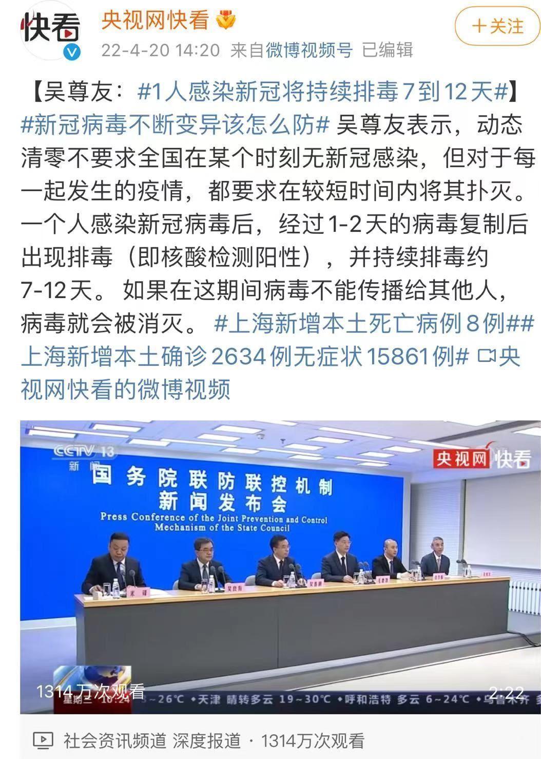 那么常态化检测周期的因地制宜,也要请吴专家把“排毒周期”理论转化为实际可操作的科研成果。