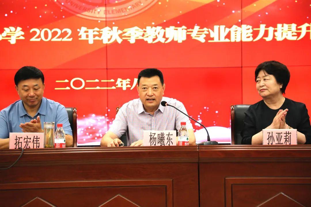 培训开幕式上,延安大学工会委员会主席杨曦东老师对我校一年来的教育教学工作所付出的努力和取得的成绩表示肯定。他勉励全体教师继续弘扬高尚师德之本,坚定教书育人之志,夯实专业成长之基,继续以饱满的热情和昂扬的斗志为助力延安大学基础教育发展而不懈奋斗。他还表示,延安大学工会将继续在硬件设施、教师发展和福利待遇等方面为附属小学提供强有力的支持,不断提升附属小学办学质量。