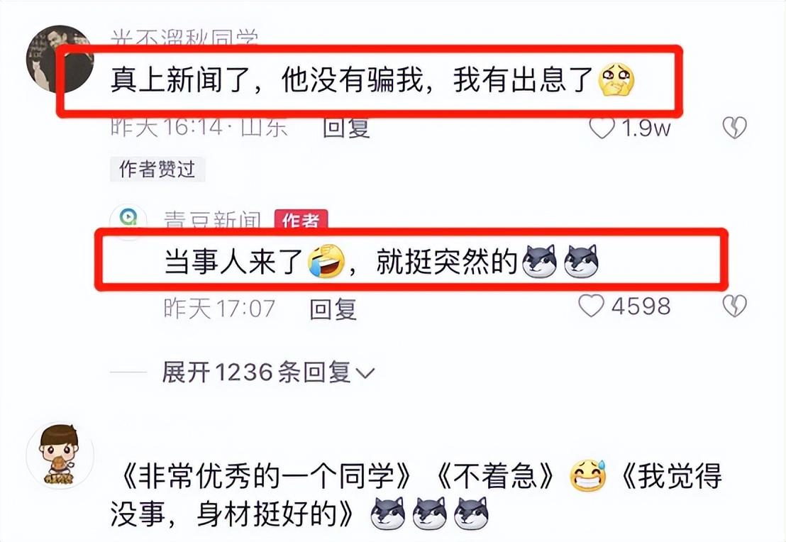 本身这件事是班级内部的事情,没想到被上传到了网上,全国人民都能看见了。学生本人也在评论区回复到,没想到自己正的火了,有出息了。非常的幽默。