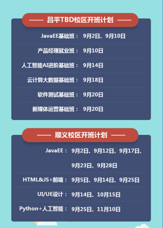 传智播客顺义校区及昌平校区开班计划表