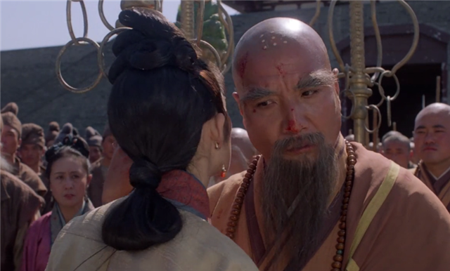 以为有倚天剑就可以嚣张跋扈,结果被暴脾气的张三丰狂扇耳光,如果不是看在郭襄面子的话,估计下场会更惨。孙梦泉的灭绝师太眼神凌厉、一股狠劲,令人意料不到的是她竟然是《红楼梦》的荣府大奶奶的扮演者,一狠一柔,掌握的恰到好处。同时她还是《三少爷的剑》的苗大娘、《铁齿铜牙纪晓岚》的陶三姑,再近一点的话她还参演了《河神》的胡婶一角。