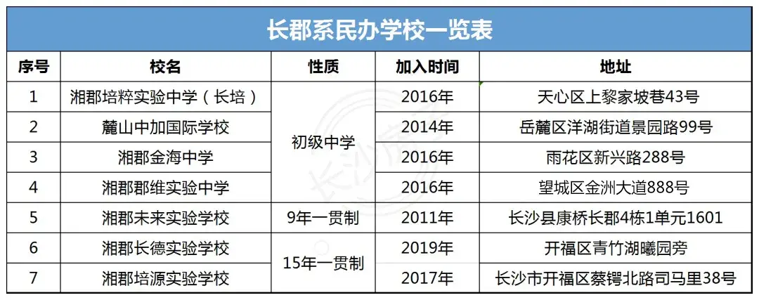 学校介绍:与长郡本部一路之隔,2016年由长郡全面托管,教育教学与长郡双语和麓山国际初中无缝对接,实现教学进度、教学资料、教学检测、教学评价四统一。