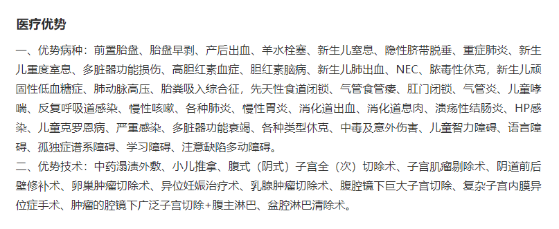 妇产科和小儿外科为海南省重点专科。海南省重点专科:产科。