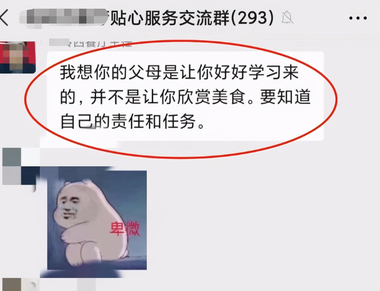 在陆陆续续被学生吃出异物来之后,也有学生在食堂的“贴心服务交流群”当中给出建议,但是这位食堂的主任却表示:父母是让你来好好学习的,不是来欣赏美食的。