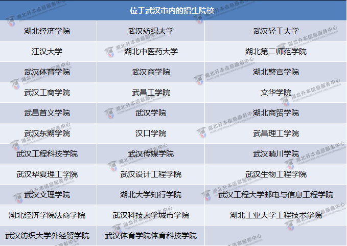 【武汉市内的专升本招生院校】