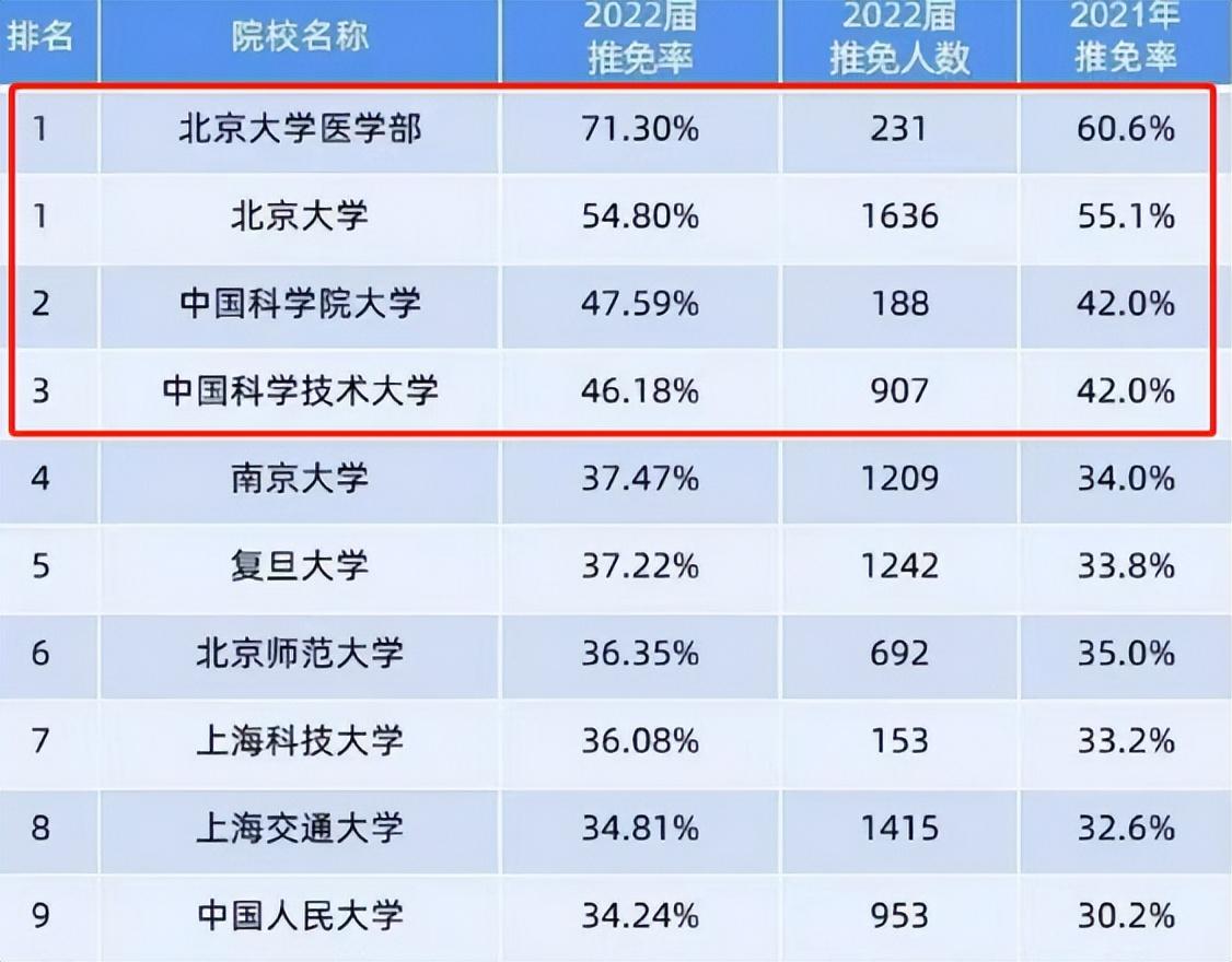 选择这样的大学以后的前途会更好。还有中国科学院大学保研率在47.59%以及北京大学保研率达到54.8%,尤其是北京大学的人推免人数更是达到1600人之多。