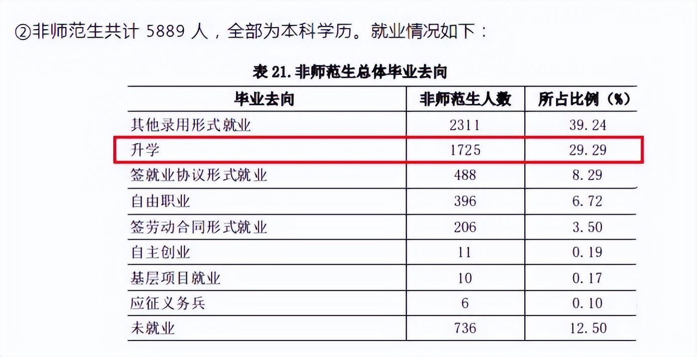 非师范生有1725人通过考研升学成功,所占比例是29.29%,看来非师范生选择考研的大学生是要更多一些的。