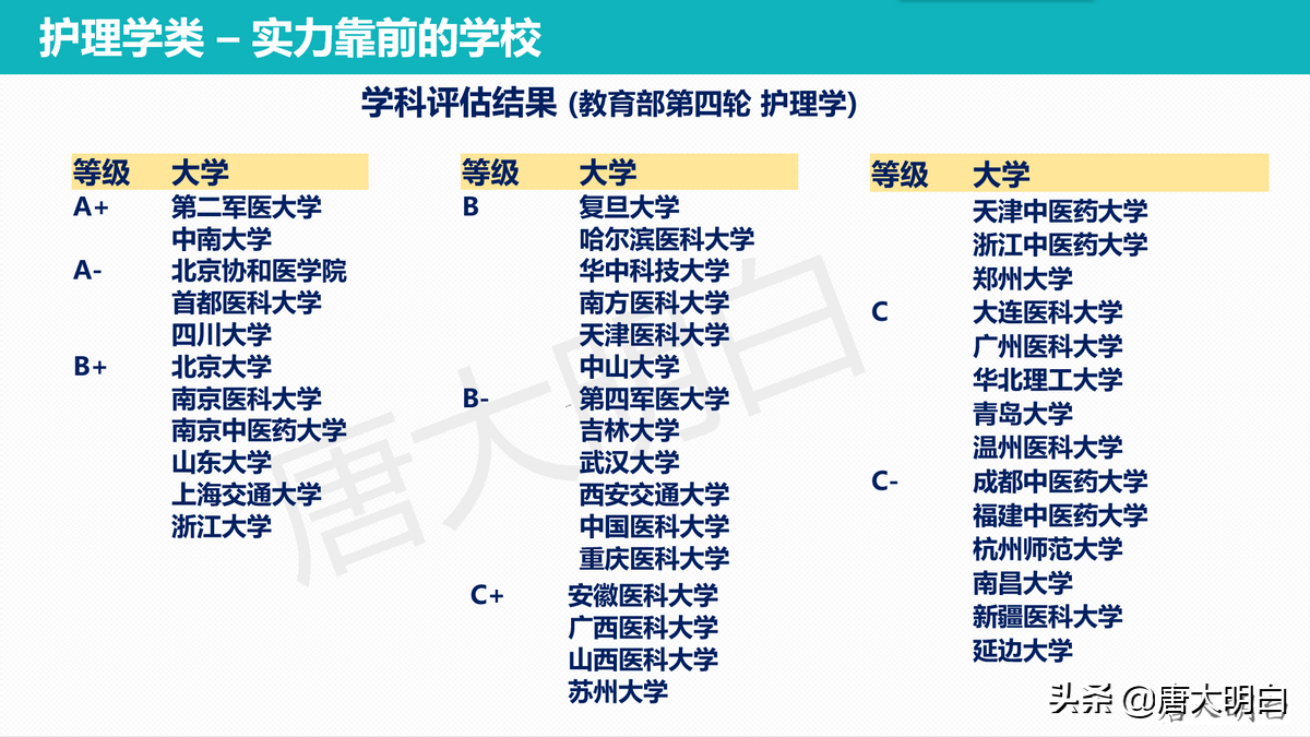 以下为全国第四轮学科评估中开设有护理学专业的院校的名单,供家长参考。