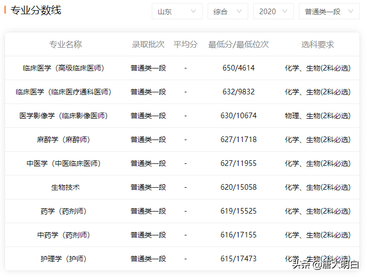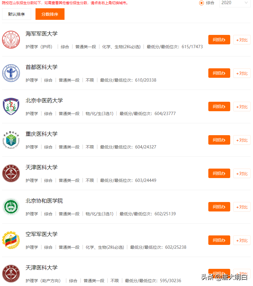 以山东地区考生报考海军军医大学为例,可以看出护理学专业属于医学类录取分数要求较低的专业之一,有一部分原因是护理学类专业相对于医学类院校强势的中医学和临床医学等其他医学类专业毕业发展较一般。