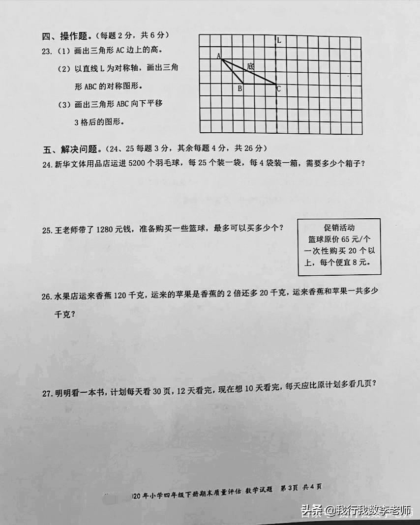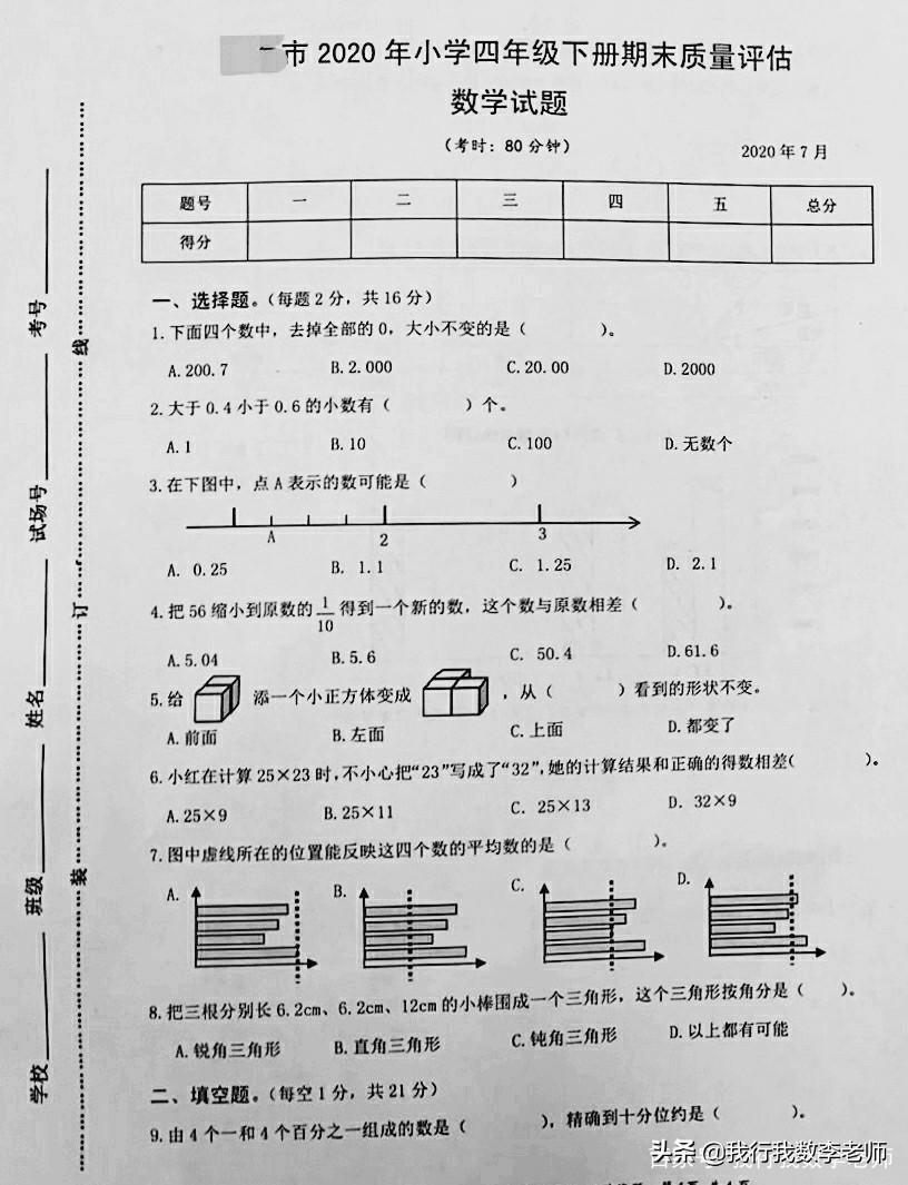 四年级下册数学期末测试卷,看似都是基础题,实则满分不易