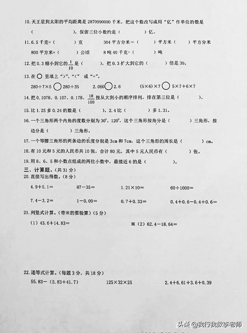 昨天,我们当地小学一至五年级期末考试,试卷不算难,考试结束后,有几个同学说自己解决问题错了,这次不能得满分。来看一下试卷和同学们出错的题目吧!