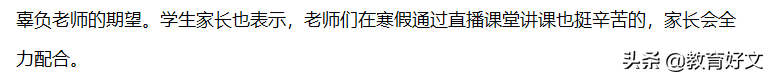 当然,也有一些家长对此很反感(不是在群里反感发布真心话,是在其他渠道吐露心声):寒假本来是孩子自主安排时间,自由支配自己生活的重要假期,现在提前搞得跟上学一样,就失去了寒假的意义了。能不能让孩子在假期读一读自己喜欢的书,做一做自己喜欢的体育锻炼,学一学自己感兴趣的爱好?