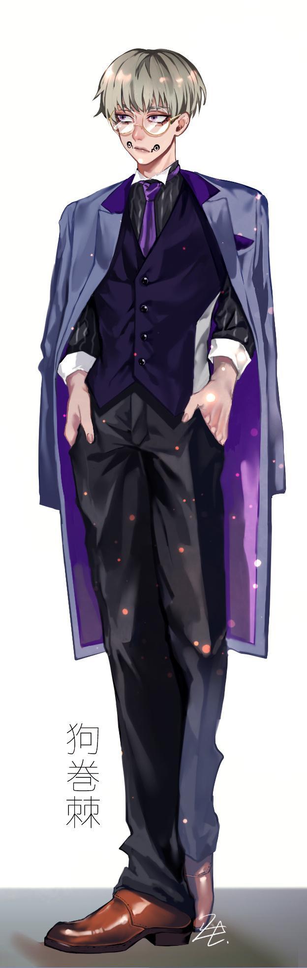 在派对中,他没有把自己的嘴巴露出来,咒言的图案在他嘴的两侧,非常可爱。狗卷还特地戴了眼镜,不知道是不是特地为了这身行头打扮的呢?
