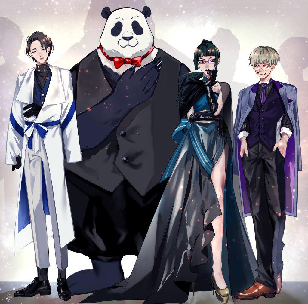 东京高专二年级组的人气也是非常高,分别有乙骨忧太、熊猫、狗卷棘和禅院真希。骨子哥在前传中是主角,刚入校就是特级咒术师,在今后一定会成长为比肩五条悟的存在。他在派对中穿着一袭白衣,感觉真的是非常“蛊”。