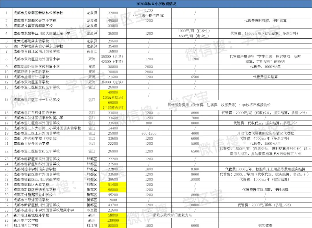 接下来小米辣先给家长们分享一下,成都现在每个区的家长都很熟悉的部分私立小学学费。