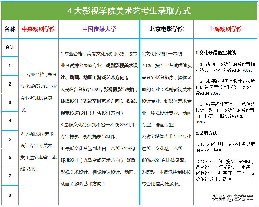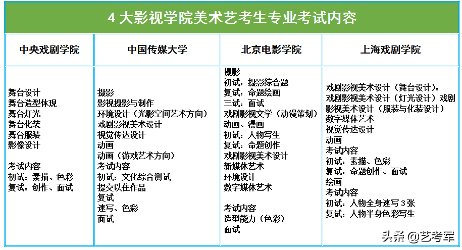 兵马未动,粮草先行。打仗靠后勤保障分胜负,艺考靠信息保障,选择报考目标院校,专业好成绩好不如学校选填得好,已经成为了经过艺考家长们的共识,这就是我研究艺考的主要目的。
