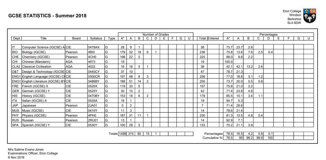 作为最为出名的英国公学,伊顿公学在各个方面都体现着它的实力。学术上,伊顿公学在2018年GCSE考试中,平均拿到A*/A的学生比例为95%,Alevel考试中,该数字为76.9%。