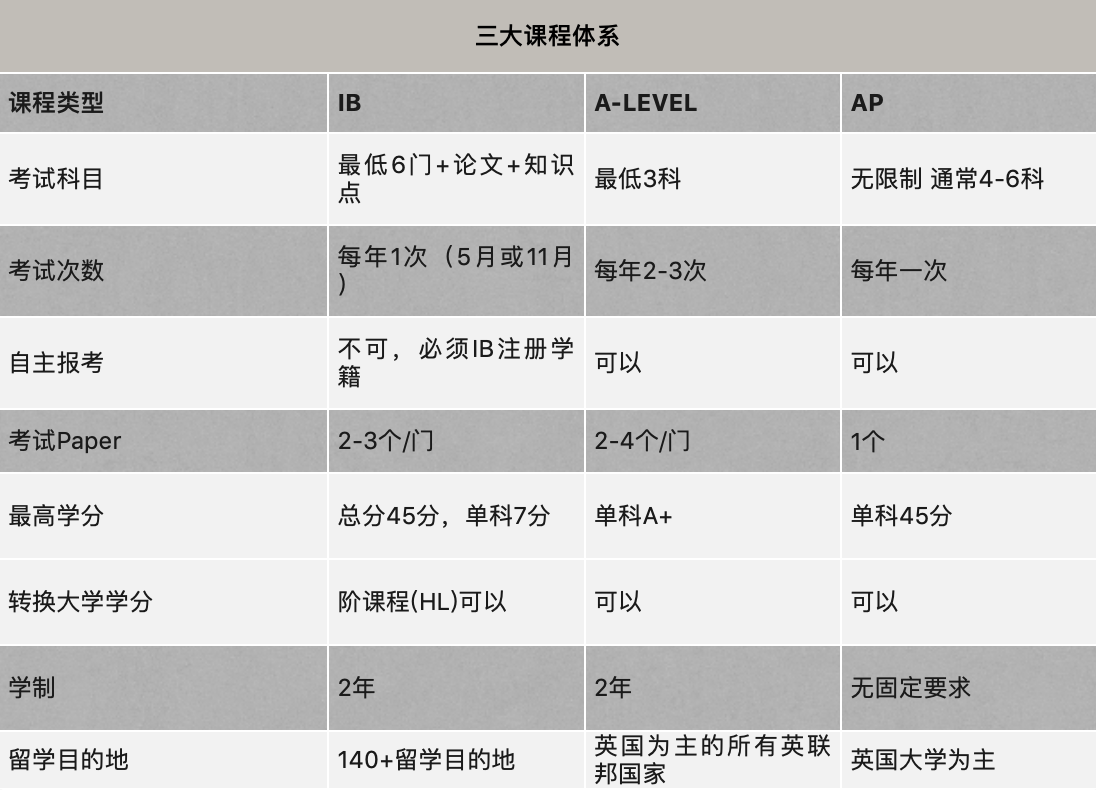 一图读懂三大国际课程体系